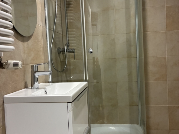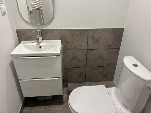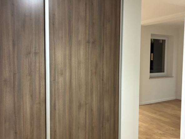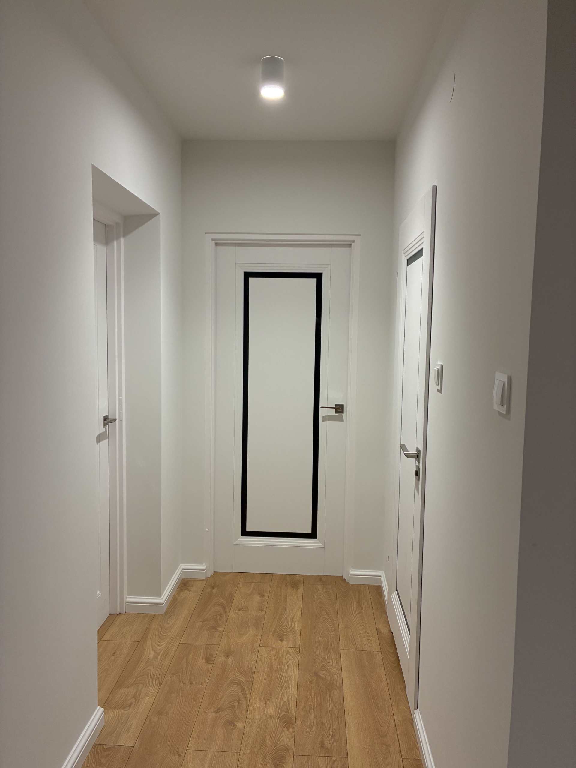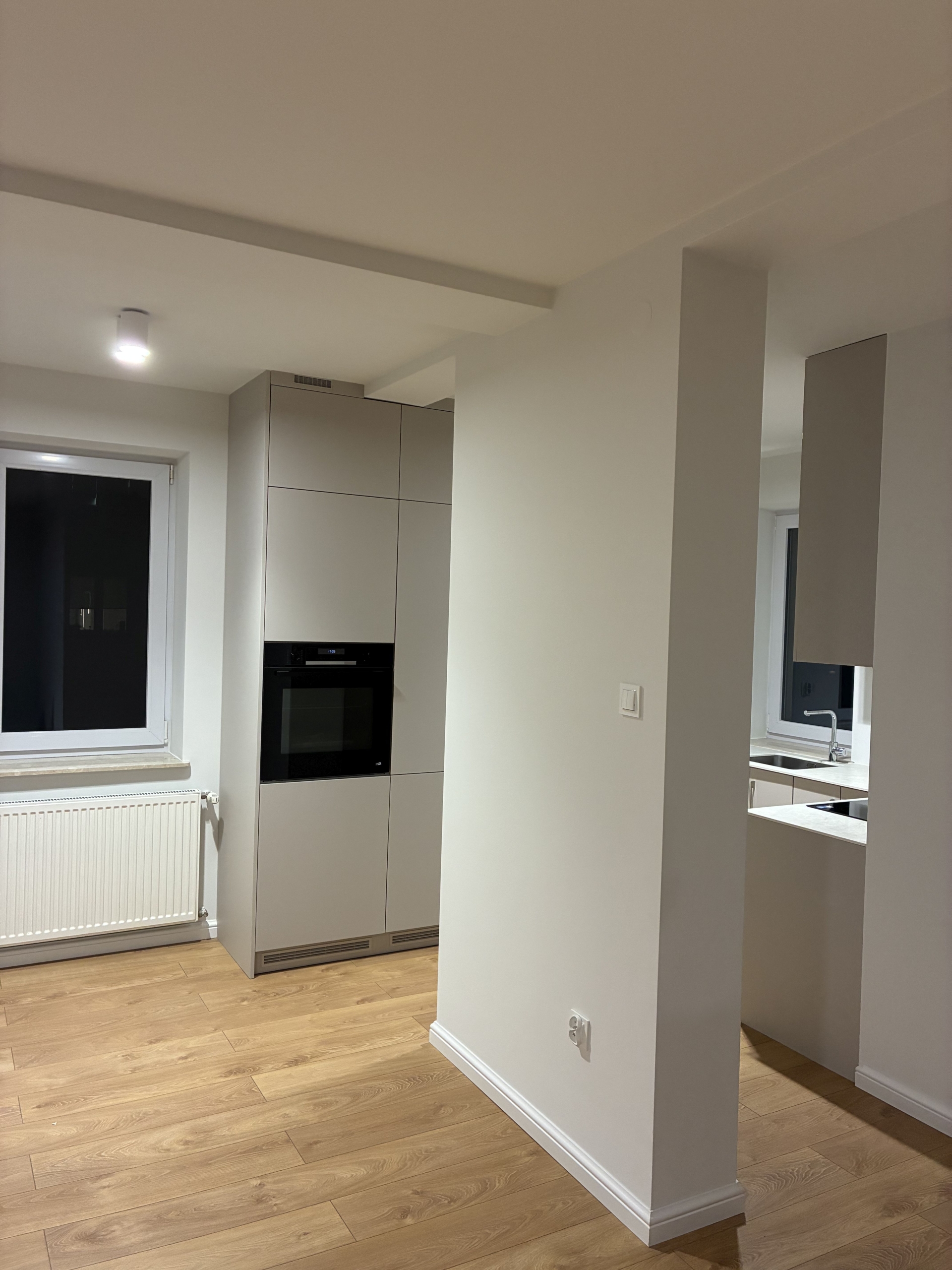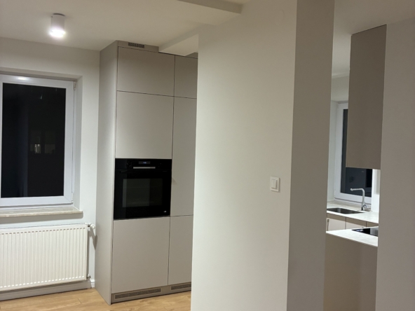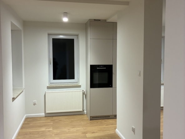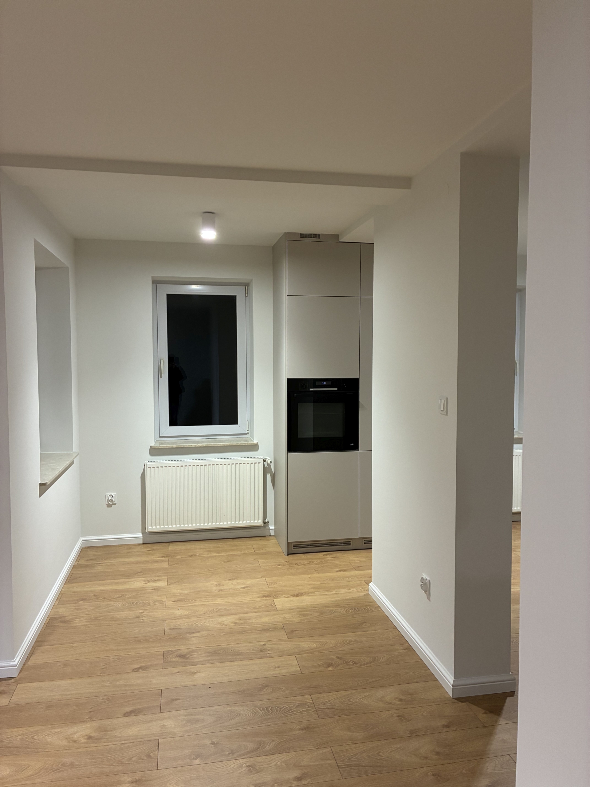 Mieszkanie po remoncie, gotowe do zamieszkania, na podłogach panele i płytki. W kuchni zabudowa kuchenna ze sprzętem AGD – lodówka, piekarnik, zamrażalka, płyta indukcyjna. W przedpokoju szafa na wymiar. Własne centralne ogrzewanie piecem dwufunkcyjnym.