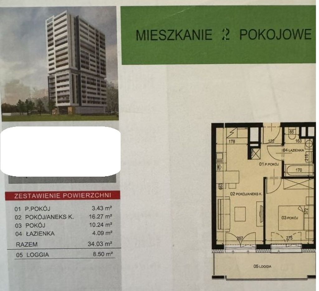 Cena 459 000 zł mieszkanie i 20 000 zł za komórkę lokatorską