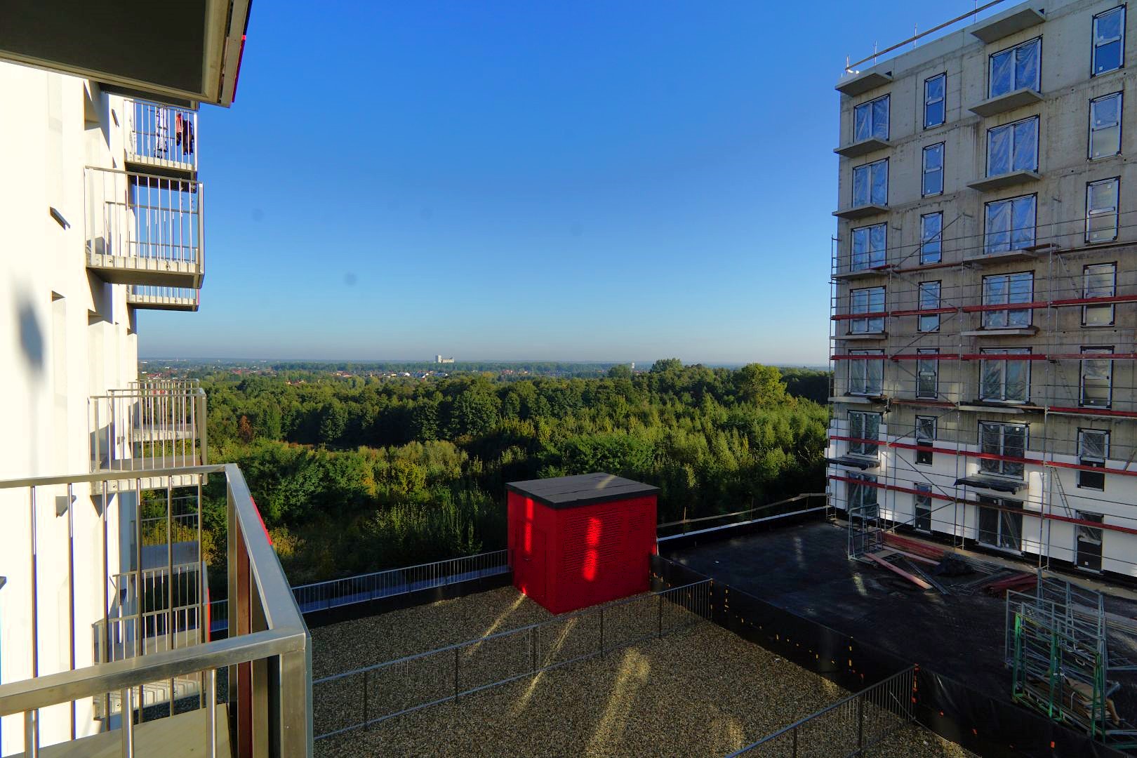 Z balkonu rozciąga się widok na północne okolice Rzeszowa.