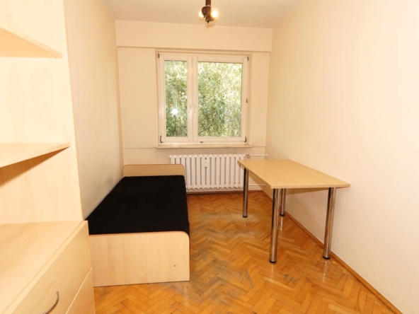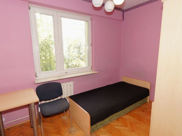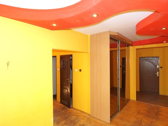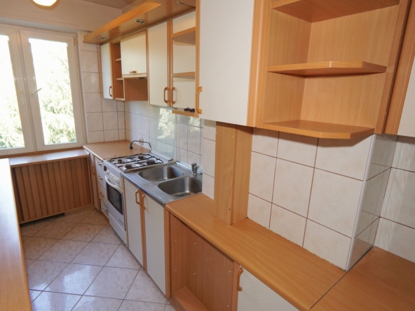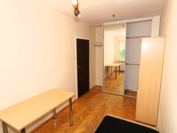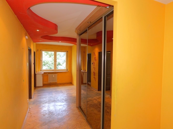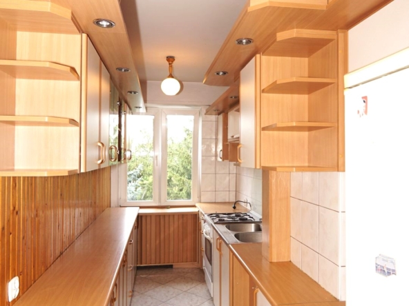 Mieszkanie jest zadbane, do odświeżenia lub remontu. Wnętrza wykończone są parkietem i płytkami. W kuchni oraz przedpokoju znajdują się meble w zabudowie. Okna częściowo drewniane, częściowo pcv.