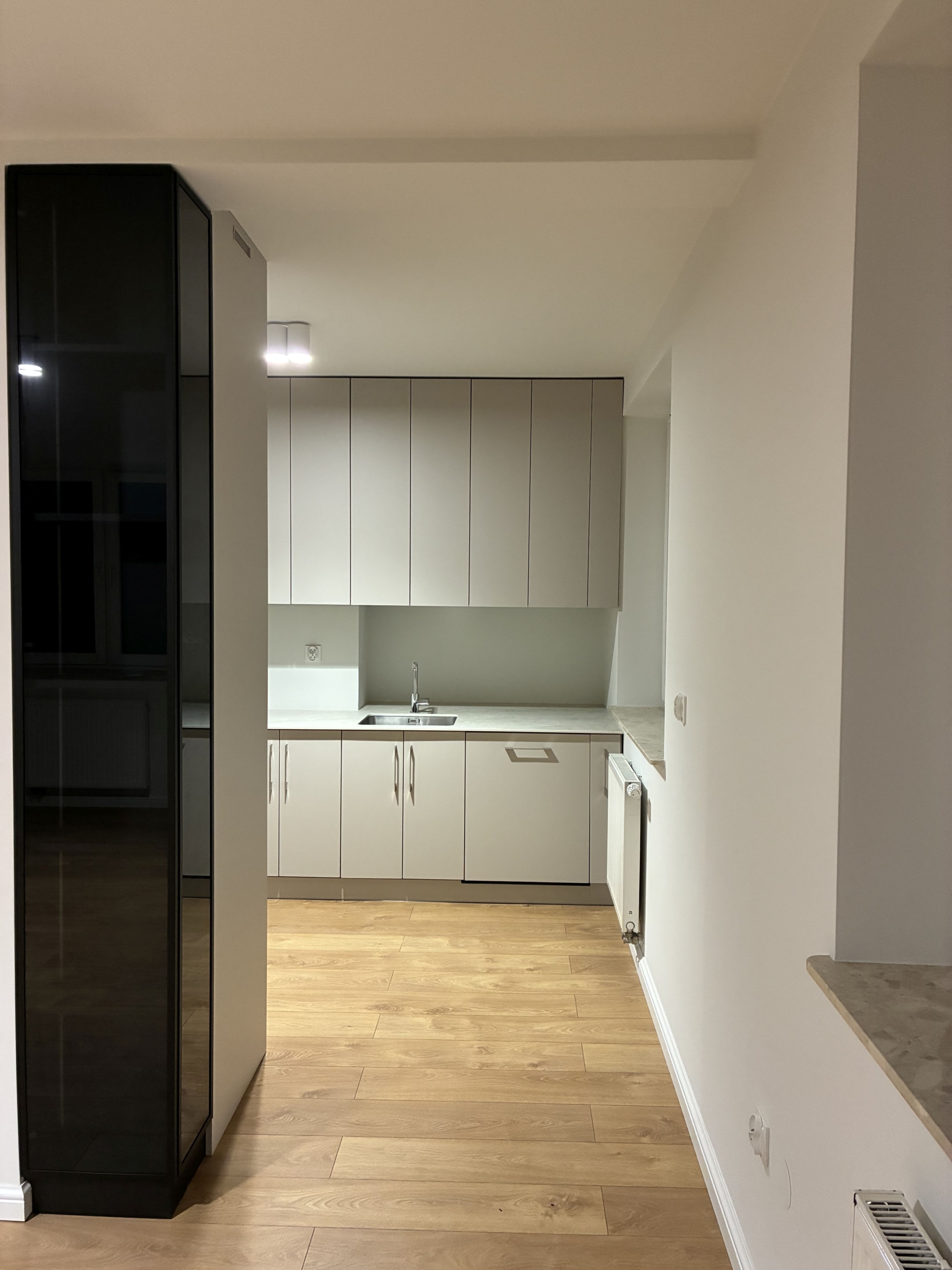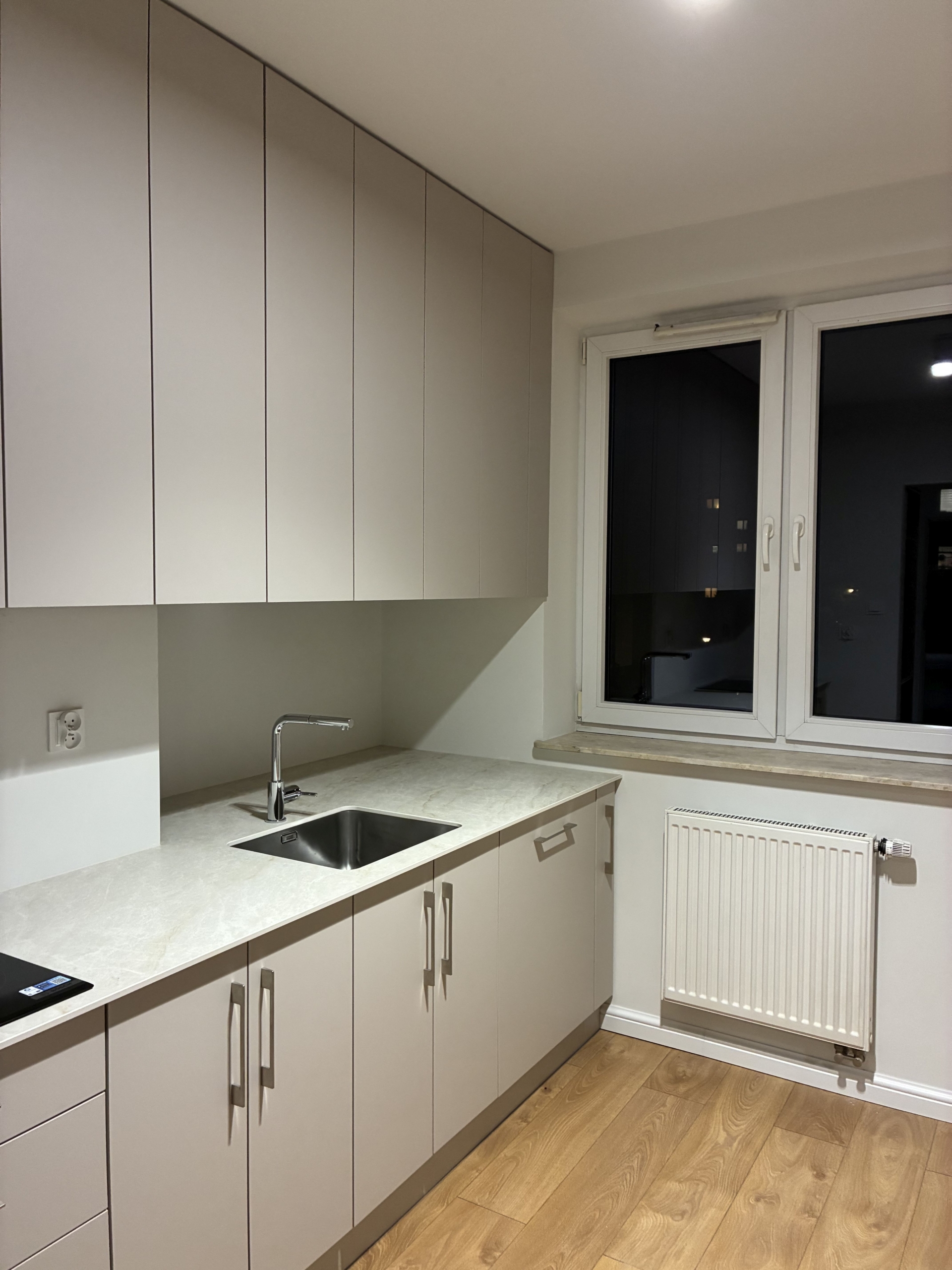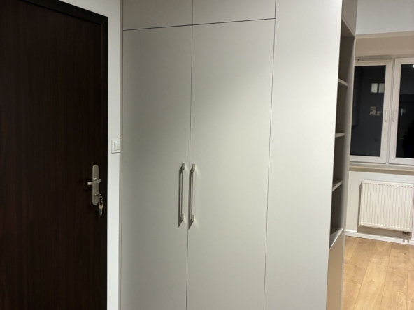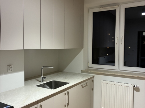 Mieszkanie po remoncie, gotowe do zamieszkania, na podłogach panele i płytki. W kuchni zabudowa kuchenna ze sprzętem AGD – lodówka, piekarnik, zamrażalka, płyta indukcyjna. Własne centralne ogrzewanie piecem dwufunkcyjnym.