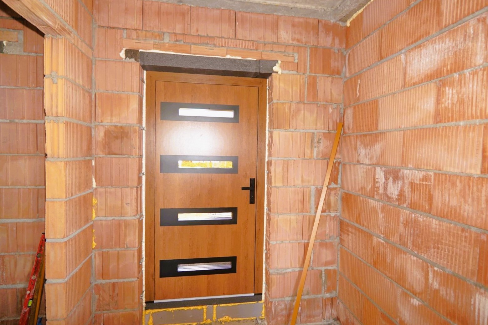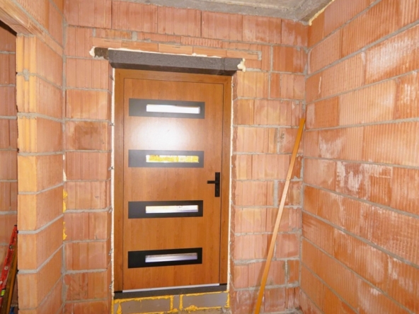 Dom wykonany z dobrych materiałów, ściany z pustaka ceramicznego, schody i strop żelbetowe, kryty blachodachówką, okna 3 szybowe w kolorze z zewnątrz, duże drzwi tarasowe przesuwne HS, drzwi wejściowe, ściany ocieplone styropianem 20cm (grafitowy, EPS 031), wykonana elewacja oraz podbitka dachowa.