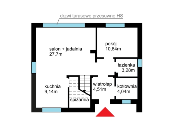 przestronny salon z dużymi przesuwnymi drzwiami tarasowymi HS,