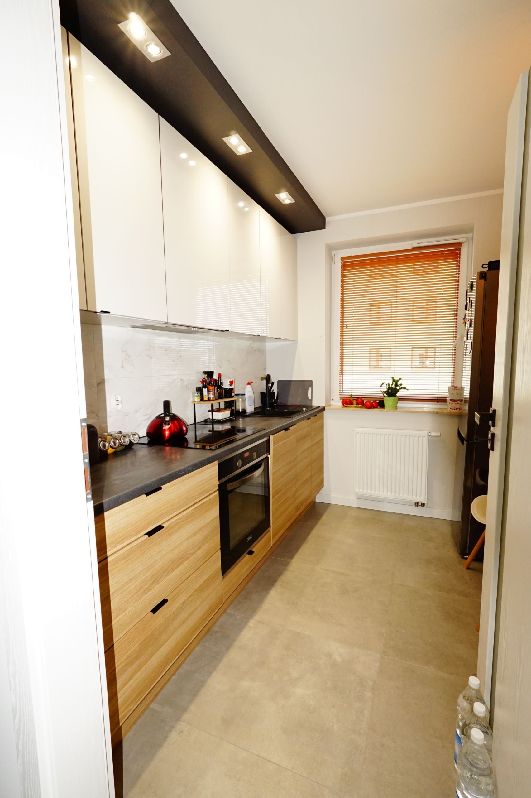 Mieszkanie zadbane, wykończone w wysokim standardzie. W kuchni meble na wymiar ze sprzętem agd , na podłodze panele i płytki, w sypialni szafa wnękowa. Mozliwość pozostawienia umeblowania/ do uzgodnienia.